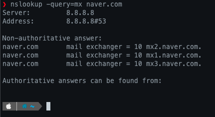 MX 레코드는 다음과 같이 조회할 수 있습니다.