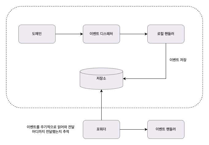포워더는 주기적으로 이벤트 저장소에서 이벤트를 가져와 이벤트 핸들러를 실행한다.
