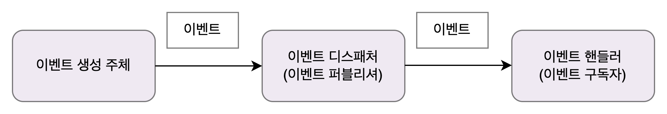 이벤트가 발생하면 이벤트 디스패처는 이벤트를 메시지 큐에 보낸다. 메시지 리스너는 알맞은 이벤트 핸들러를 이용해서 메시지를 처리한다.