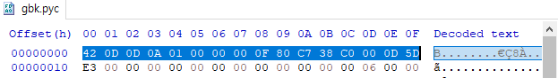 zip에서 얻은 pyc를 두개 까서 첫줄을 복사해서 메모장에 메모해둡니다.