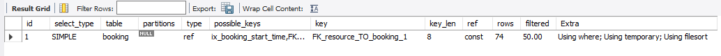 MySQL 인덱스 타는지 확인하는 방법 mysql에서는 인덱스를 여러 개 걸었을 때 하나밖에 타지 않습니다. 그래서, 인덱스를 적절하게 걸어주지 않으면 데이터가 커졌을 때 트래픽이 튀거나 슬로우쿼리 등 문제가 될 확률이 거의 99%입니다. 인덱스를 타는 지 확인하는 방법은 MySQL의 Explain을 사용하는 것입니다. explain은 쿼리의 실행 계획을 반환해주므로 쿼리 튜닝, 성능 분석, 전략 수집 등의 기초가 됩니다 ! 사용 방법은 SELECT문 앞에 explain을 붙여주면 됩니다. explain select * from booking where resource_id=1 and start_time > NOW() order by rand(); 실행계획 분석 직접 쿼리문을 실행해보니 아래와 같은 결과..