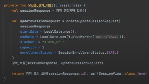 해당 포스팅에서는 테스트 시 Web 영역을 어떻게 Mocking 할 지에 대해 다룬다.통합테스트요즘은 단위 테스트를 넘어서 통합테스트 / 인수테스트 / E2E테스트를 많이 구성한다.외부 API를 호출하는 코드가 있다. 해당 로직을 Mocking할 때 어떻게 할 지 생각해보자.주문 시스템 (예시 코드)예시를 위해 제작한 주문 시스템의 코드를 보자.아래는 첫 주문 기능의 진입점인 주문 컨트롤러이다.@RestControllerclass OrderController( private val orderService: OrderService,) { @PostMapping("/order") fun order( @RequestBody orderRequest: OrderRequest, )..